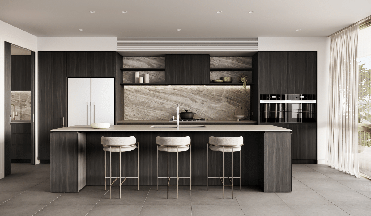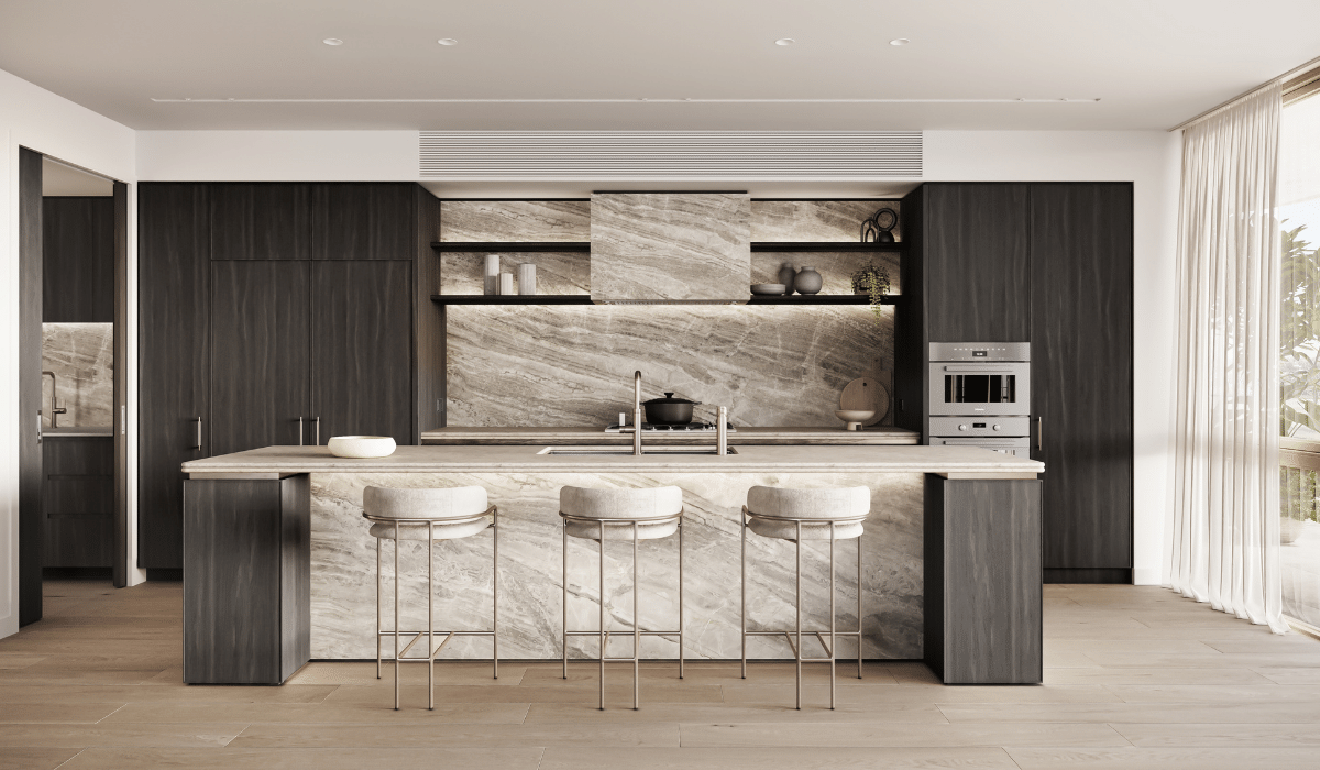 Luxurious interiors spill to large balconies, a year-round temptation to enjoy the health benefits of being outdoors.